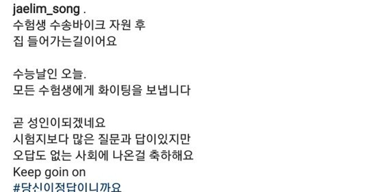 故 송재림이 몇년 전 수능날 올렸던 인스타 글